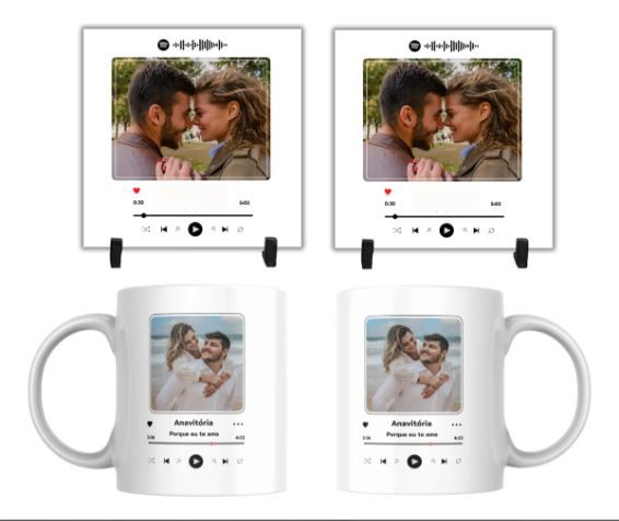 Spotify 2 Azulejos 20x20 Com Foto & 2 Canecas Presente